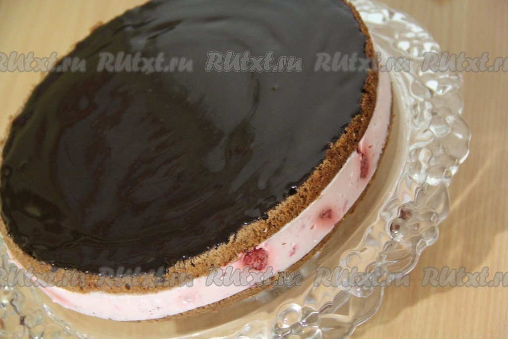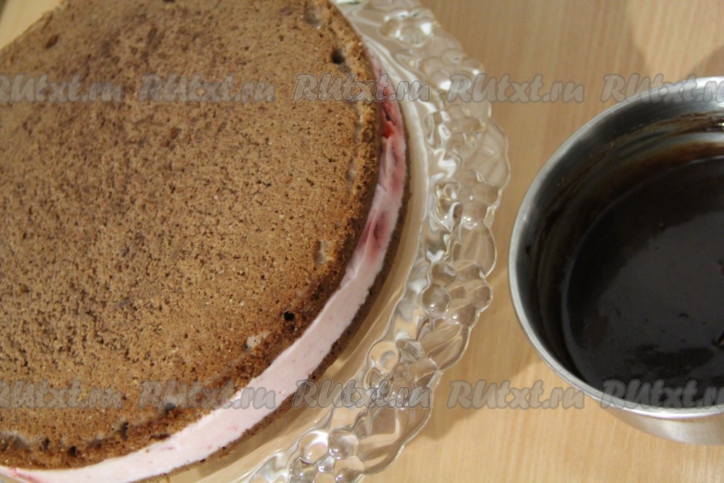 Сверху выложить второй корж и слегка прижать. Поставить торт в холодильник на несколько часов до полного застывания.