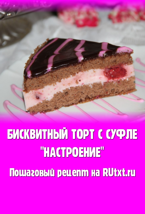 Хочу предложить вам рецепт бисквитного торта с суфле, который придумала сама. Название "Настроение" - тоже моё, так как рецептик пришёл под настроение, отсюда такое название. Я очень люблю сочетание шоколадных коржей и прослойки из суфле, а если в суфле добавить ягоды, так вкус бисквитного торта полностью преображается. Простой и доступный рецепт, попробуйте и я уверена, вам понравится.