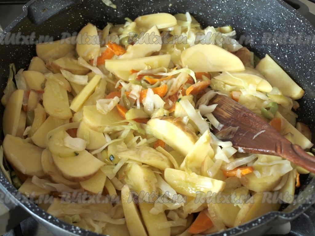При подаче блюдо посыпать зеленью. Рагу из картофеля, кабачков и капусты готовится достаточно просто, а получается не только вкусным, но и полезным.