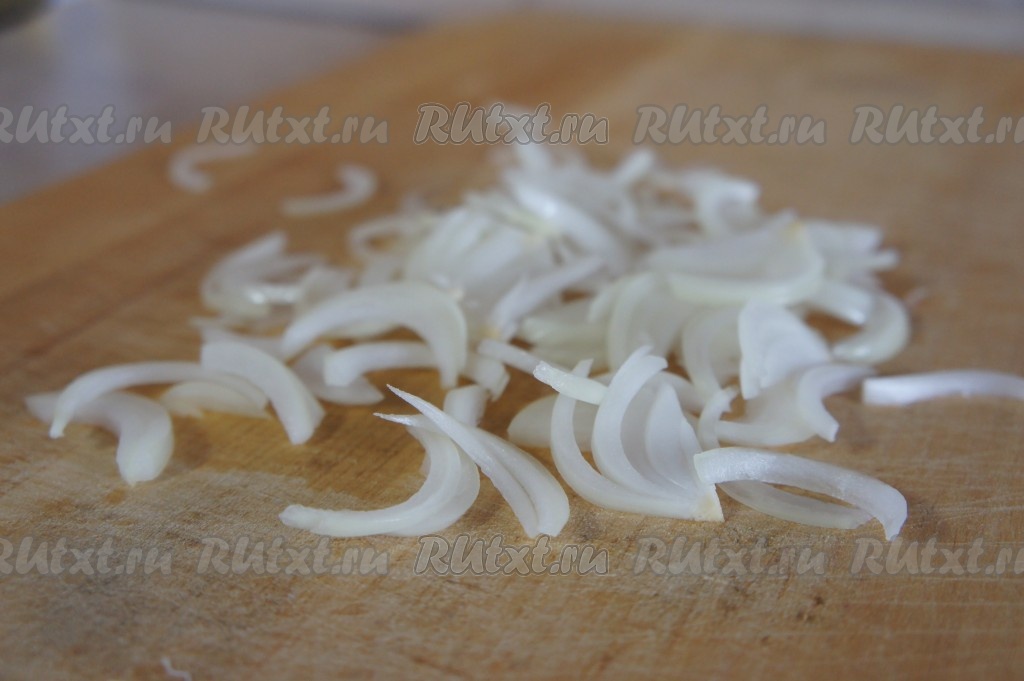 Пока варятся рыба и картошка, обжарим овощи. Для этого лук и морковь очищаем. Лук нарезаем произвольно (в этот раз я нарезала на тонкие полукольца, можно нарезать на мелкие кубики). Выкладываем морковку с луком на сковороду с хорошо разогревшимся растительным маслом и обжариваем овощи на среднем огне до мягкости моркови (примерно 5 минут), иногда перемешивая, затем убираем с огня.