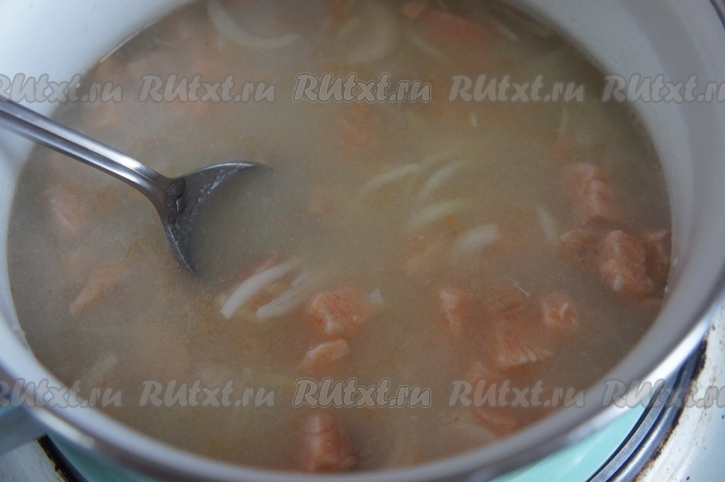 После того как картошка станет достаточно мягкой, добавляем в суп с сёмгой обжаренные морковку с луком, даём закипеть и варим на небольшом огне 3-4 минуты.