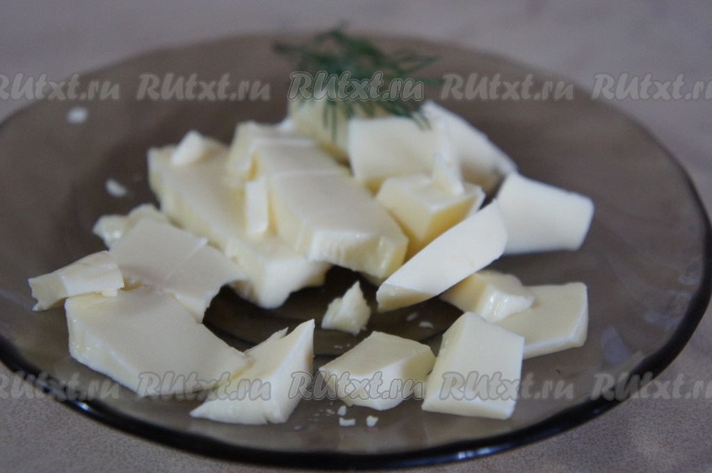 Для этого супа можно взять плавленный пастообразный сыр или плавленный сырок. В этот раз я готовила с сырком, его нужно нарезать на части.