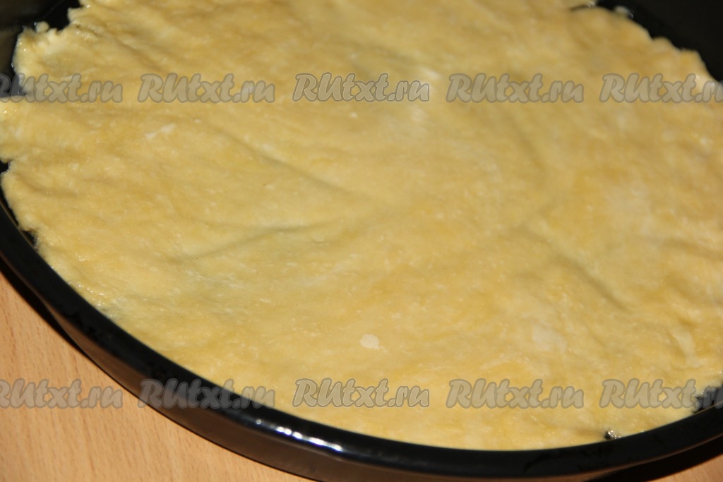 Форму для выпечки (у меня - круглая форма размером 30х30 сантиметров) смазать растительным маслом, тесто раскатать и выложить в форму.