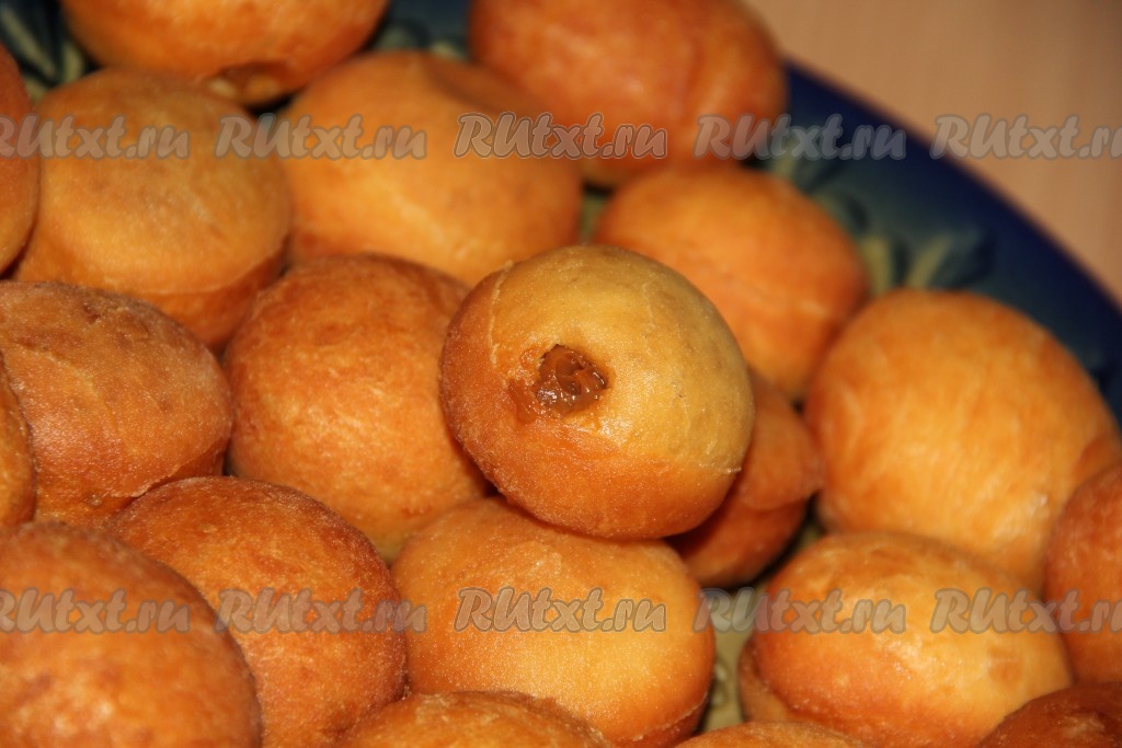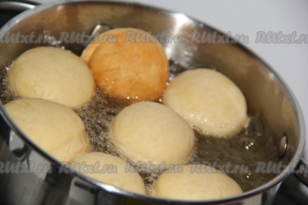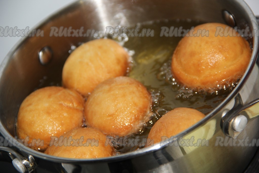 Растительное масло хорошо разогреть, опускать пончики во фритюр небольшими порциями.