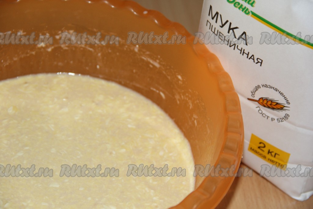 Рабочую поверхность присыпать мукой, выложить тесто и хорошо его вымесить, добавляя по необходимости муку. Тесто должно получиться мягким, эластичным, но не сильно забитым мукой. Прикрыть тесто полотенцем и оставить на 1-2 часа, тесто должно подняться вдвое.