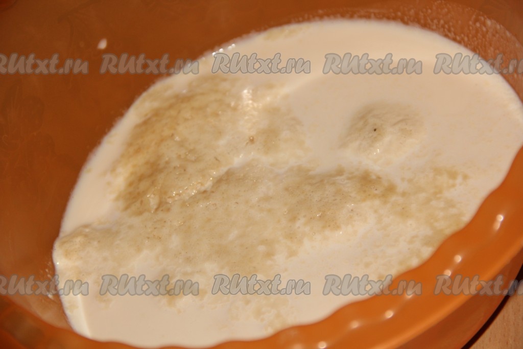 В молоко влить воду и слегка подогреть. Всыпать сахар и дрожжи в смесь молока и воды, перемешать, оставить в тепле на 15-20 минут, чтобы дрожжи ожили.