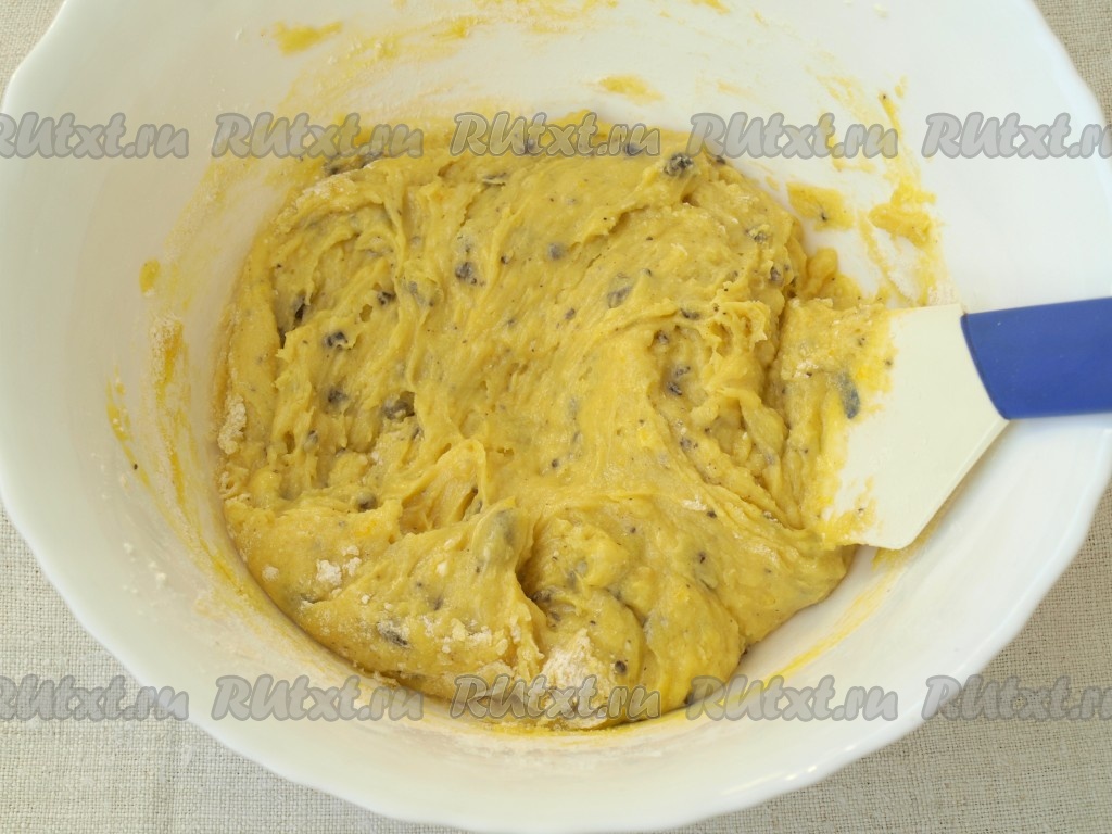 Шоколад нарезать ножом на небольшие кусочки (или натереть на крупной тёрке). Перемешать шоколад с масляной смесью венчиком.