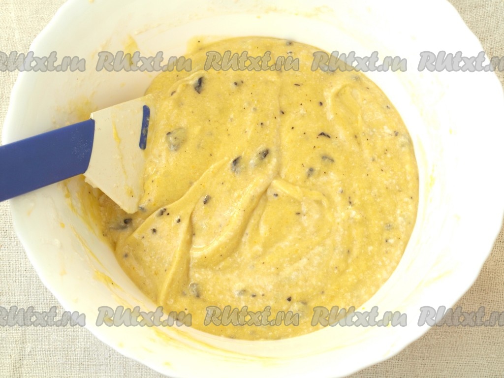 Просеять в тесто частями муку, каждый раз хорошо вмешивая её в тесто. Добавляя муку, учитывайте, что тесто для пирога должно получиться однородным, достаточно густым и вязким.
