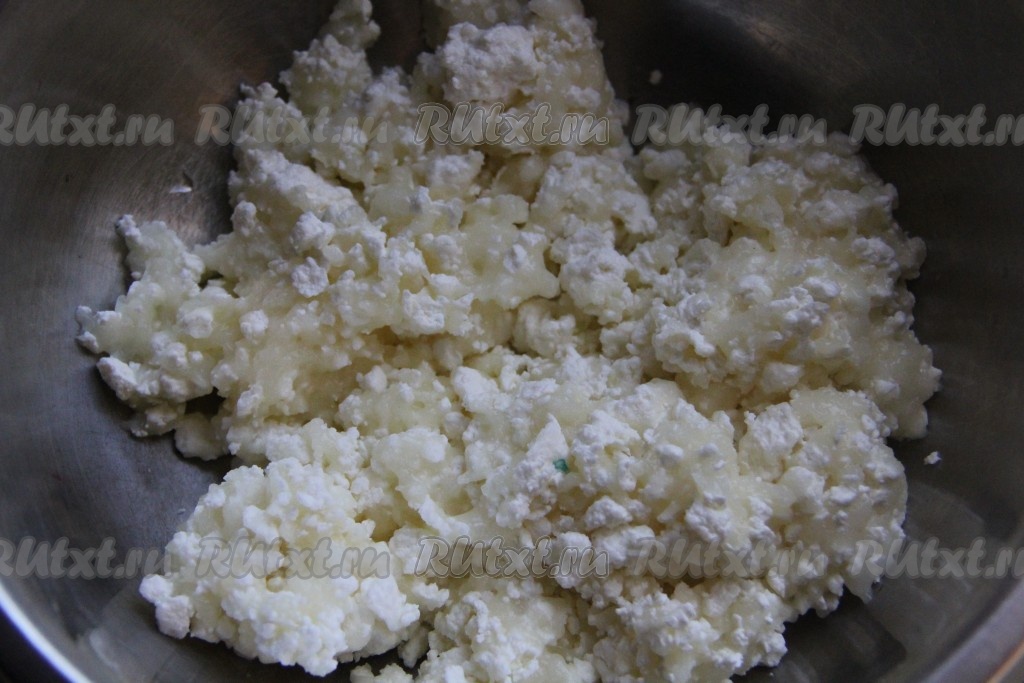 Творог смешать с содой и оставить на 1 час. Передерживать творог не стоит, 50-60 минут вполне хватит. Творог посветлеет и станет прозрачным.