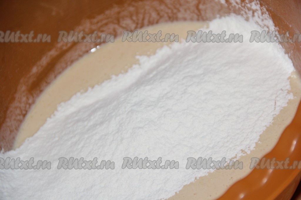 Затем всыпать просеянную муку.