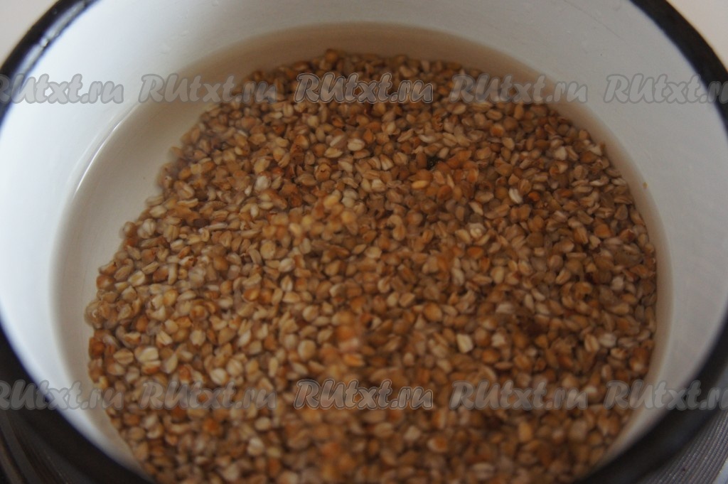 Гречку, если нужно, перебрать, затем выложить в сито и тщательно промыть водой. В кастрюле вскипятить 400 миллилитров воды, выложить подготовленную гречку, подсолить и варить с момента закипания на небольшом огне минут 20-25 (до готовности гречки), затем гречневую кашу откинуть на дуршлаг, оставить остывать.