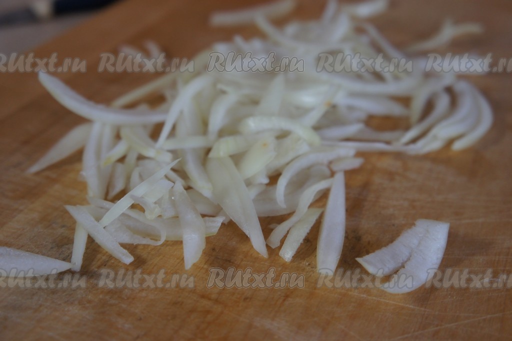Очищенный лук нарезать на четверть кольца (или полукольца).