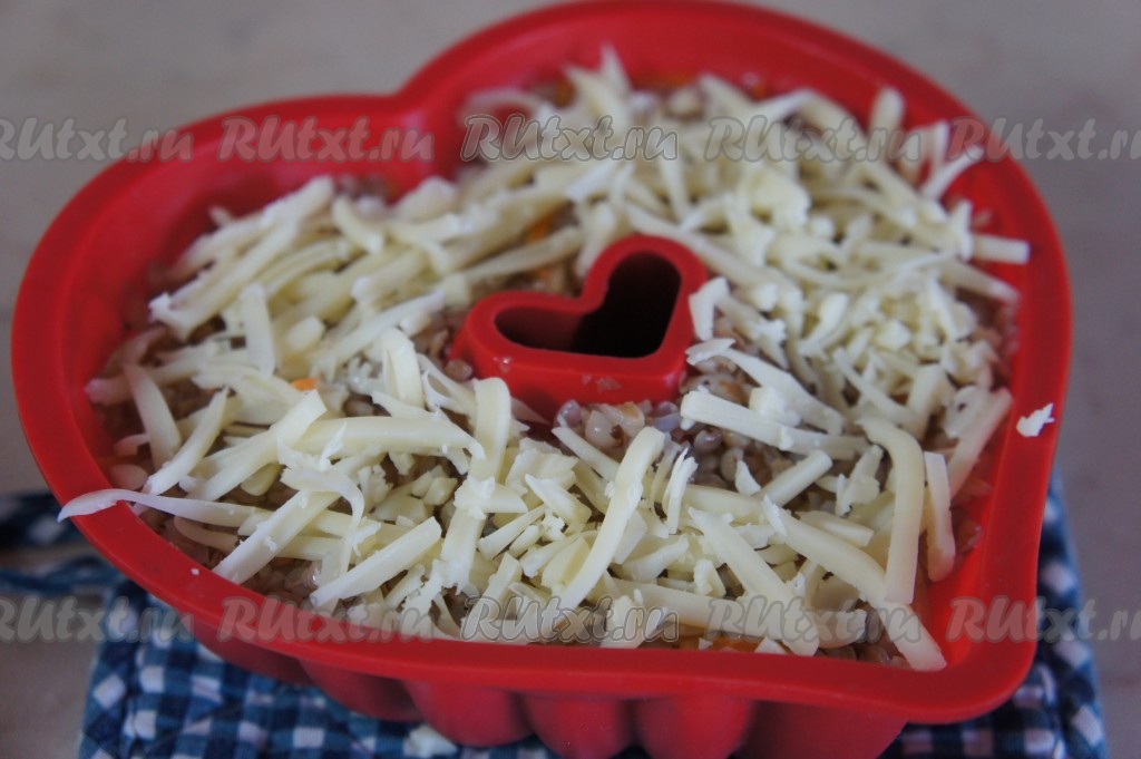 Поставить форму в духовку, разогретую до 180 градусов, и готовить запеканку из гречневой каши до образования румяной сырной корочки (примерно 15 минут).