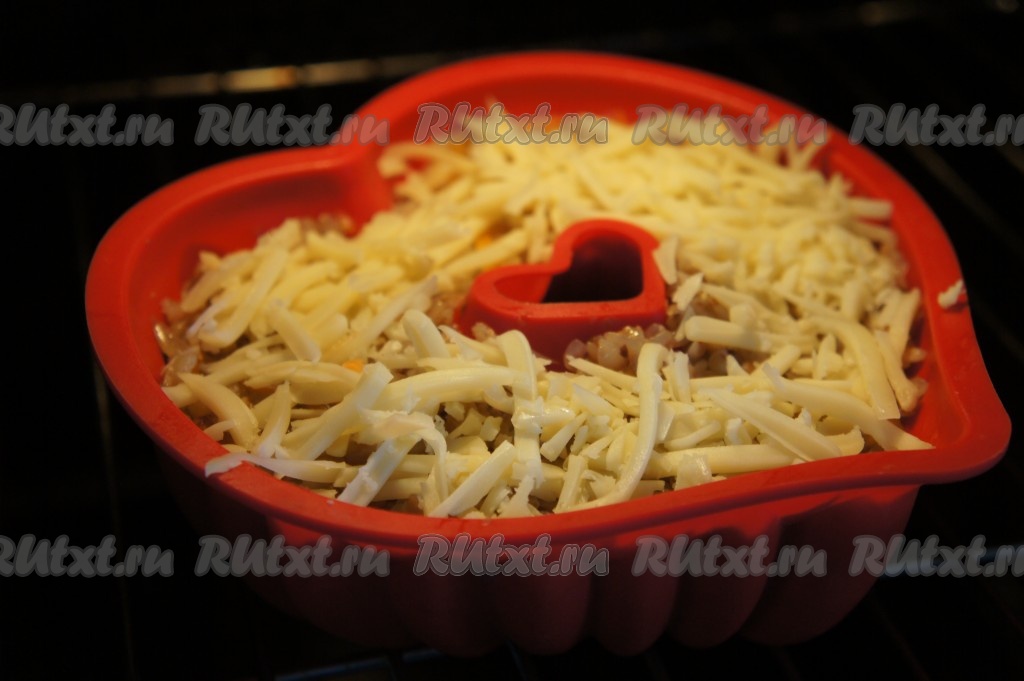 Присыпать сверху сыром, натёртым на крупной тёрке.