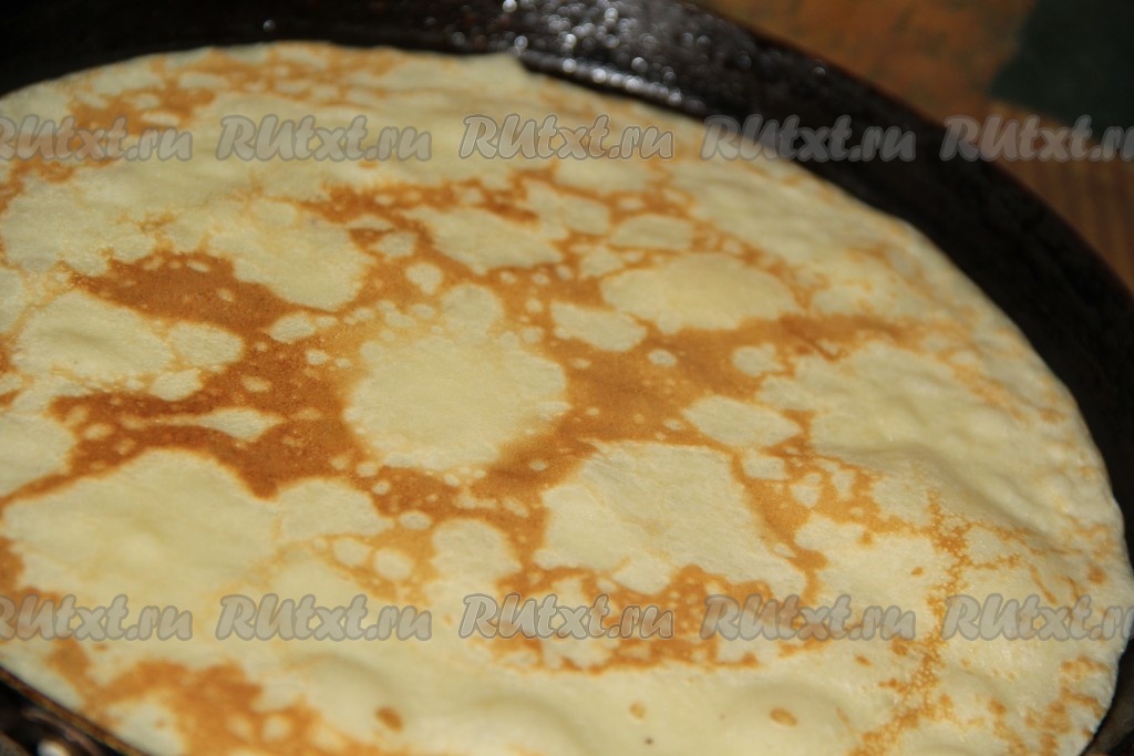 Сковороду хорошо разогреть, смазать растительным маслом перед выпечкой первого блина (если качество покрытия сковороды хорошее, в дальнейшем её можно маслом не смазывать). Вылить немного теста и равномерно распределить его по сковороде. Выпекать банановый блин с двух сторон до золотистости на среднем огне. Затем аккуратно переложить аппетитный блинчик на тарелку, а из оставшегося теста пожарить все блины, складывая их горкой на тарелочку. Тесто нужно периодически перемешивать.