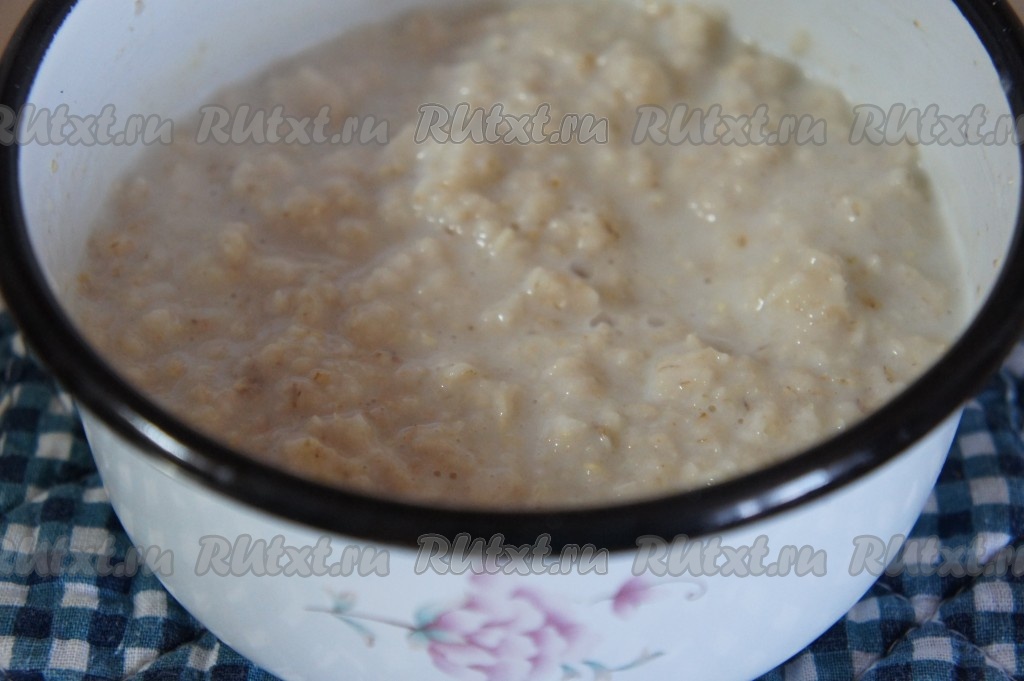Аппетитную, вкусную, полезную овсяную кашу подать в горячем виде, сверху можно присыпать отложенными кусочками кураги.