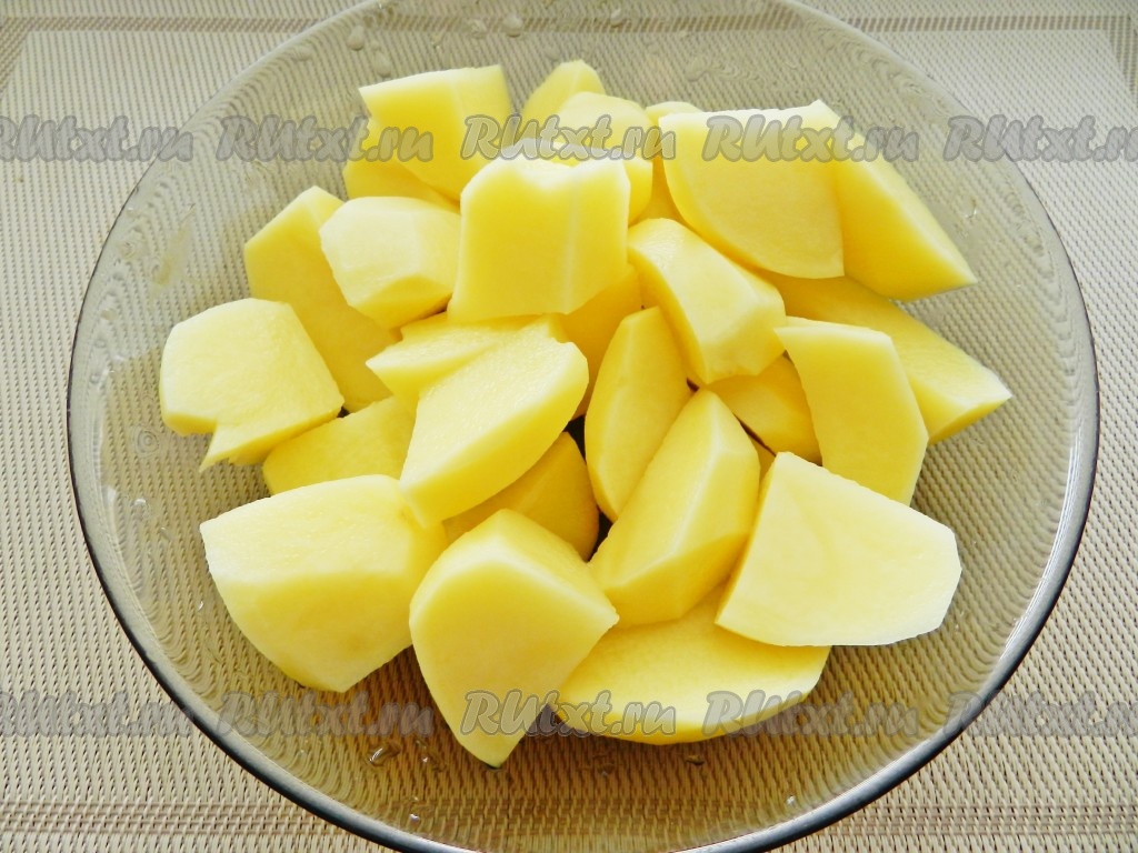 Картофель очистить и нарезать крупными кусочками.