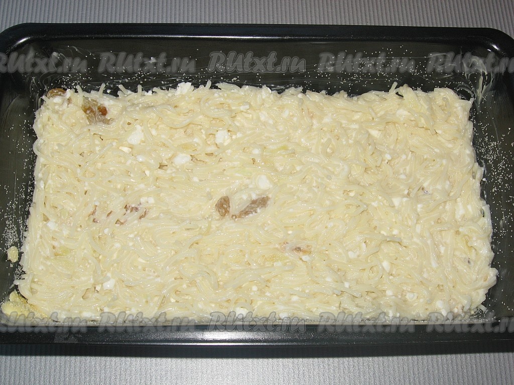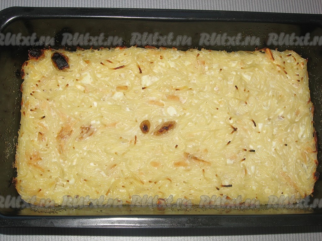 Запекать 25-30 минут. Готовый лапшевник немного охладить в форме, затем с помощью лопаточки аккуратно перевернуть на блюдо.