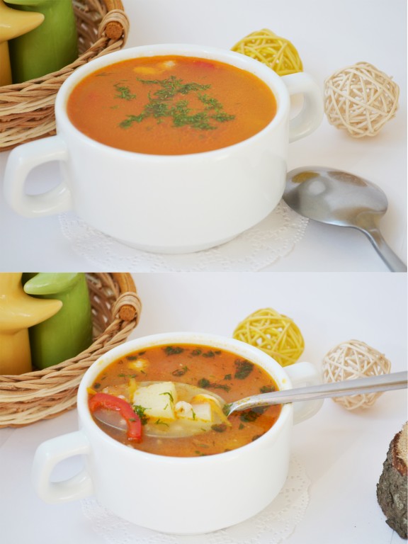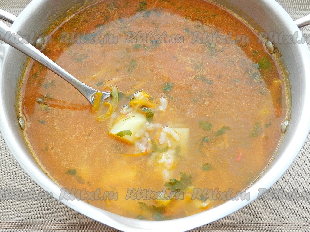 Вкусный и ароматный суп с рисом и помидорами готов.