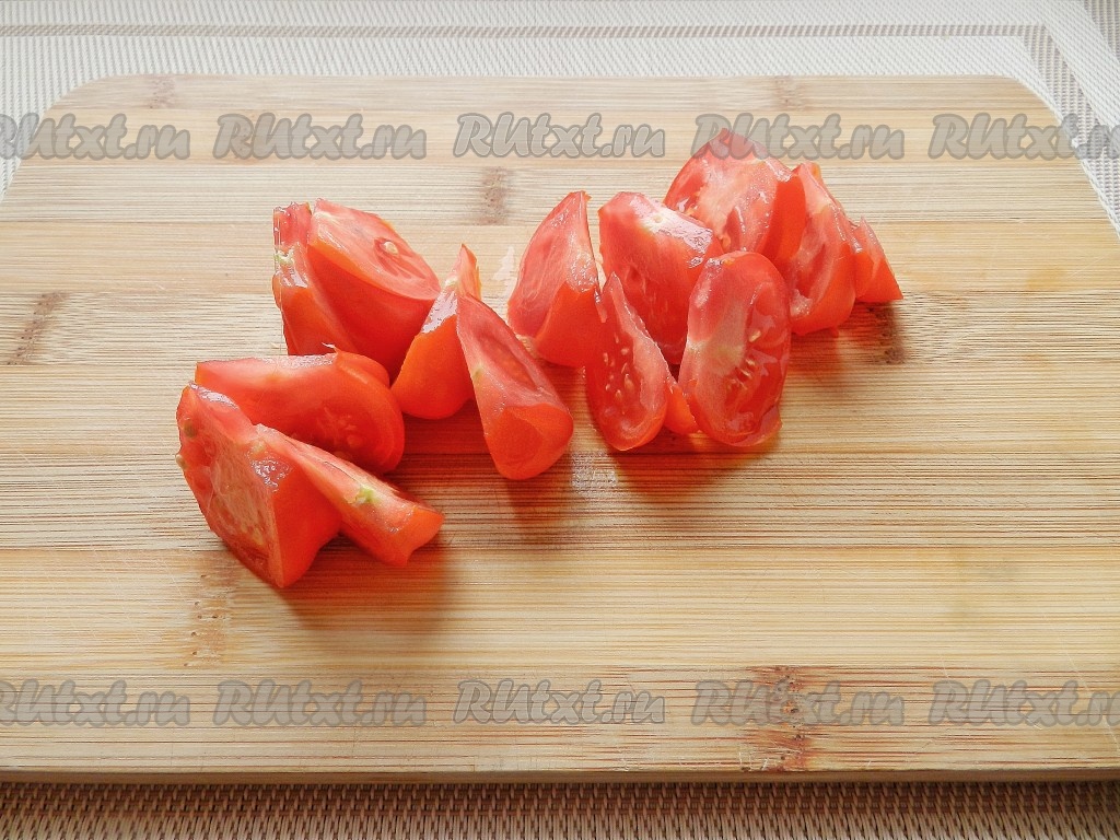 Помидоры нарезать дольками.