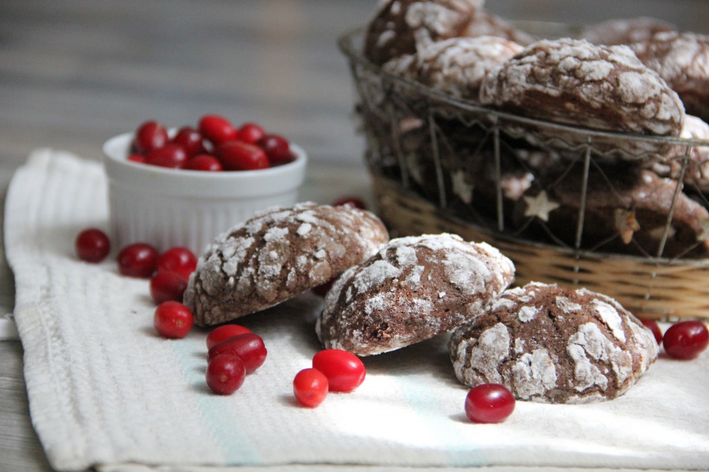 По истечении времени достаём тесто для будущего шоколадного печенья и формируем 35 шариков. Каждый шарик тщательно обваливаем в сахарной пудре. Выкладываем шарики на противень, застеленный пергаментной бумагой, на достаточно большом расстоянии друг от друга.