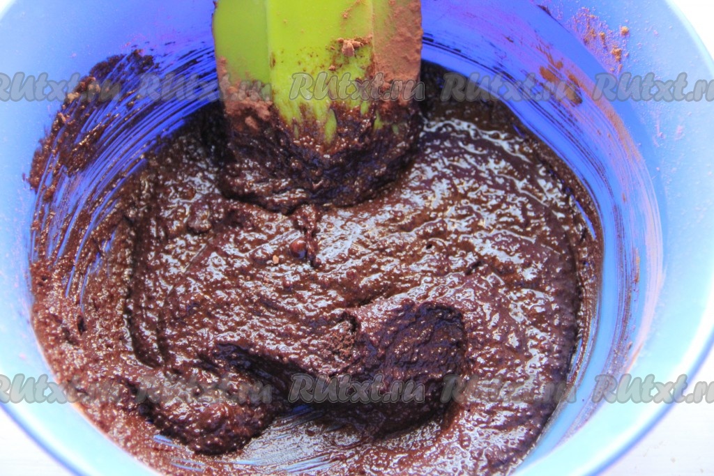 Добавить яйца по одному, тщательно вмешивая каждое яйцо в шоколадную смесь.