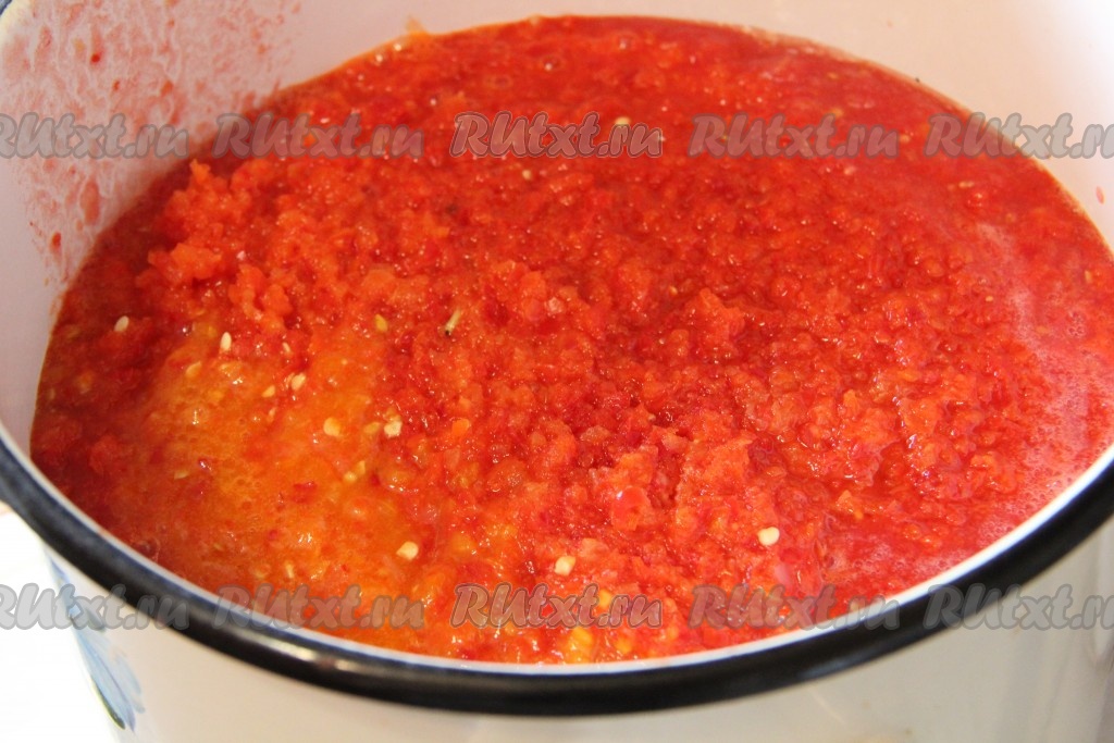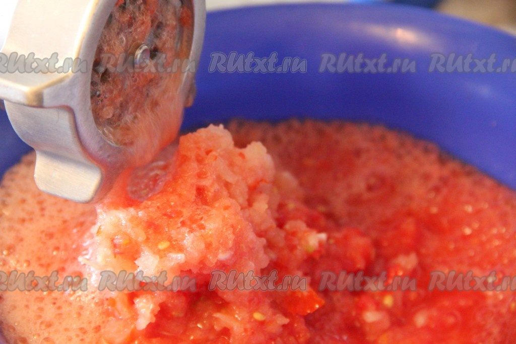 Лук, перец и помидоры перекрутить через мясорубку.