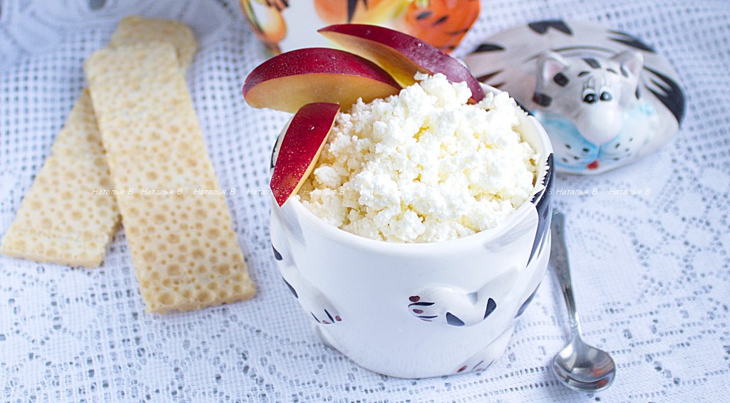 Сыворотку можно использовать для приготовления блинов, хлеба или повторно дать ей закиснуть в течение 1-2 суток при комнатной температуре и затем вместо кефира вылить в кипящее молоко и снова снять творог, только в меньшем количестве. Для самых маленьких детишек такой творожок из молока и кефира вводится в прикорм в небольшом количестве с добавлением фруктового пюре. Для детей более старшего возраста творог можно заправить сметаной, джемом, свежими фруктами, ягодами или сухофруктами.