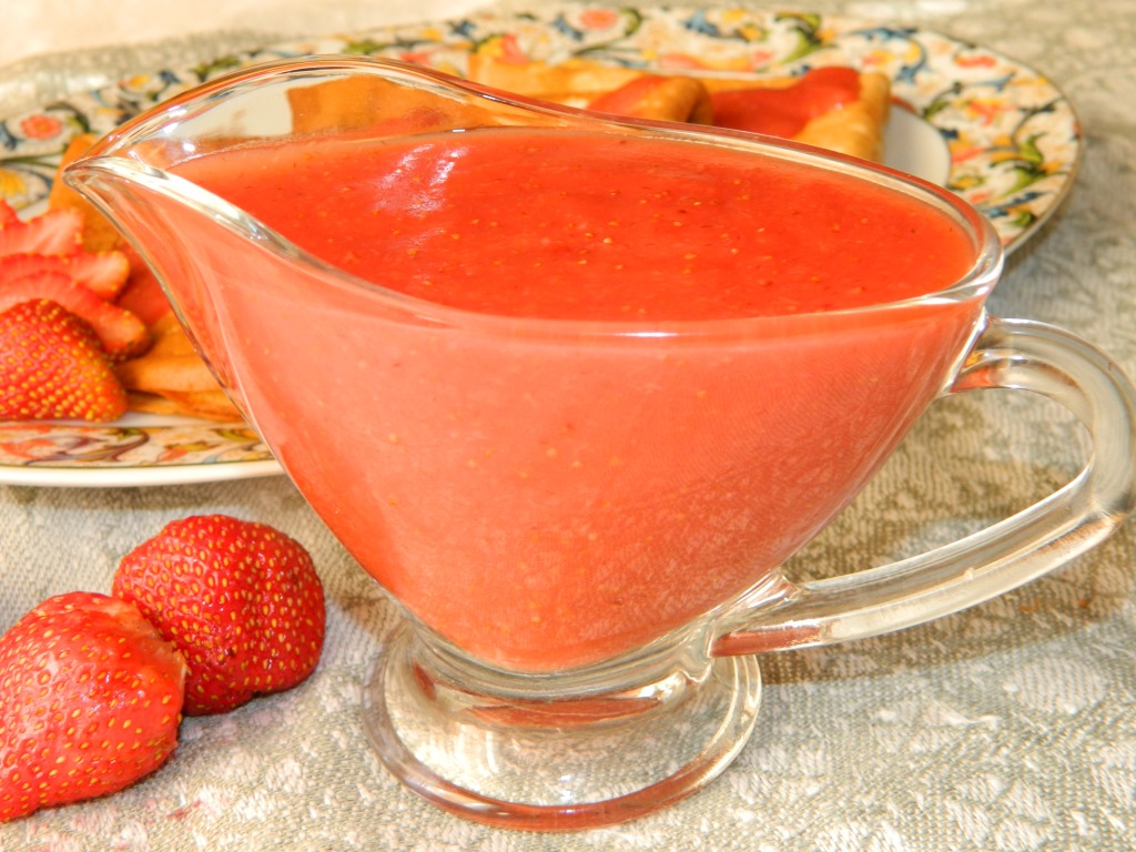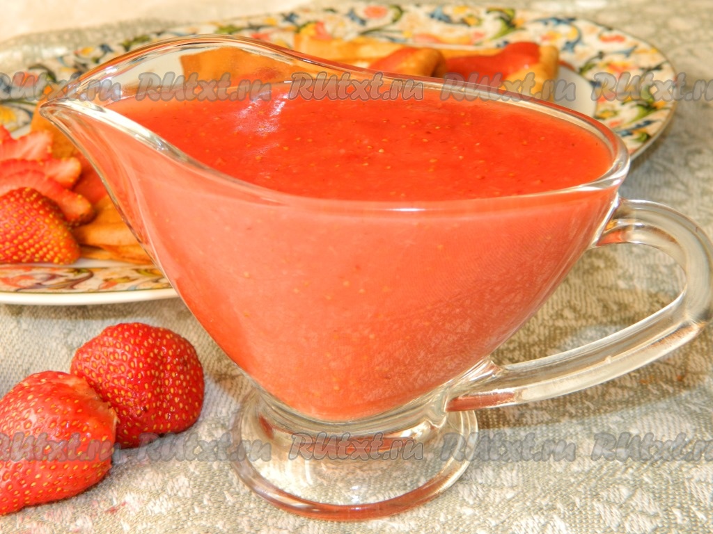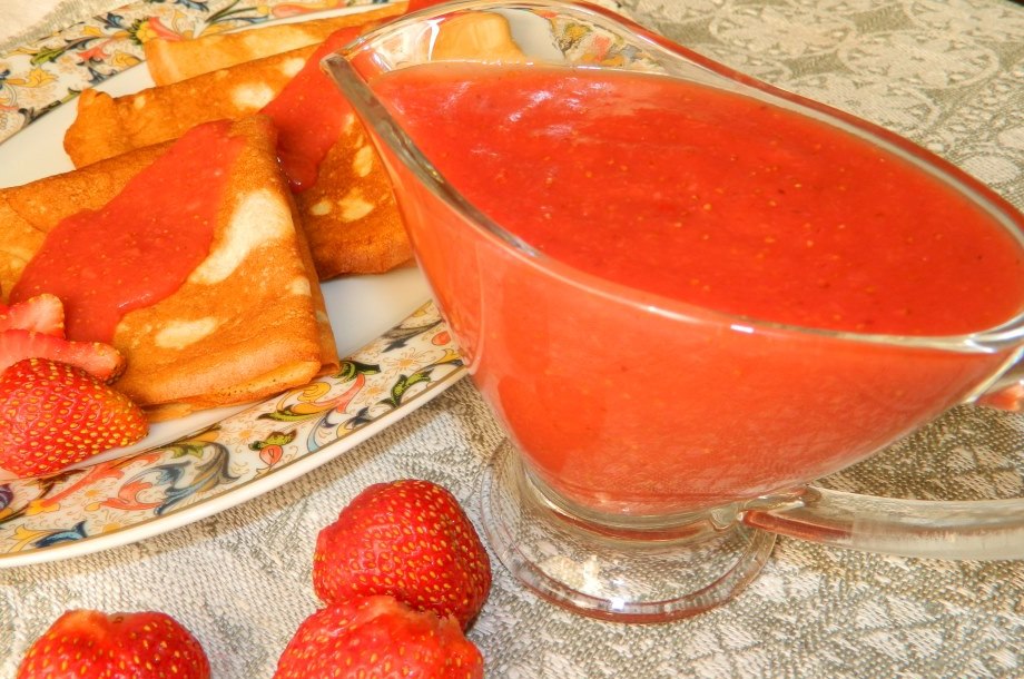 Клубничный соус, приготовленный по этому рецепту, получается вкусным, ярким, он станет замечательным дополнением к различным десертам. Я очень люблю его есть с блинами, сырниками, поливать им каши и мороженое. Соус из клубники вкусен и тёплым, и холодным.