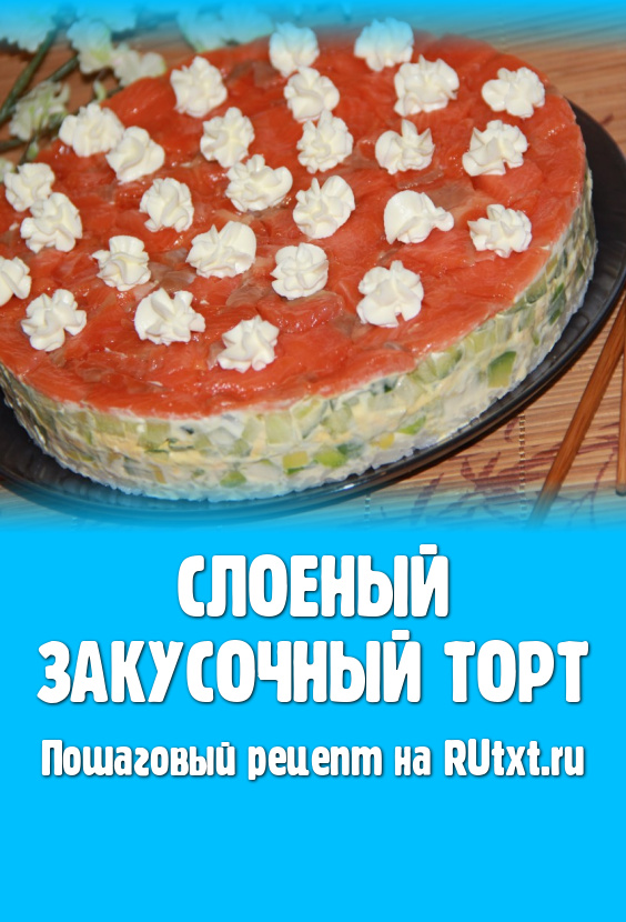 Хочу поделиться рецептом слоеного закусочного торта. Такая закуска будет прекрасным дополнением на праздничном столе. Главное дать торту хорошо пропитаться и тогда прекрасное блюдо порадует и удивит ваших гостей.