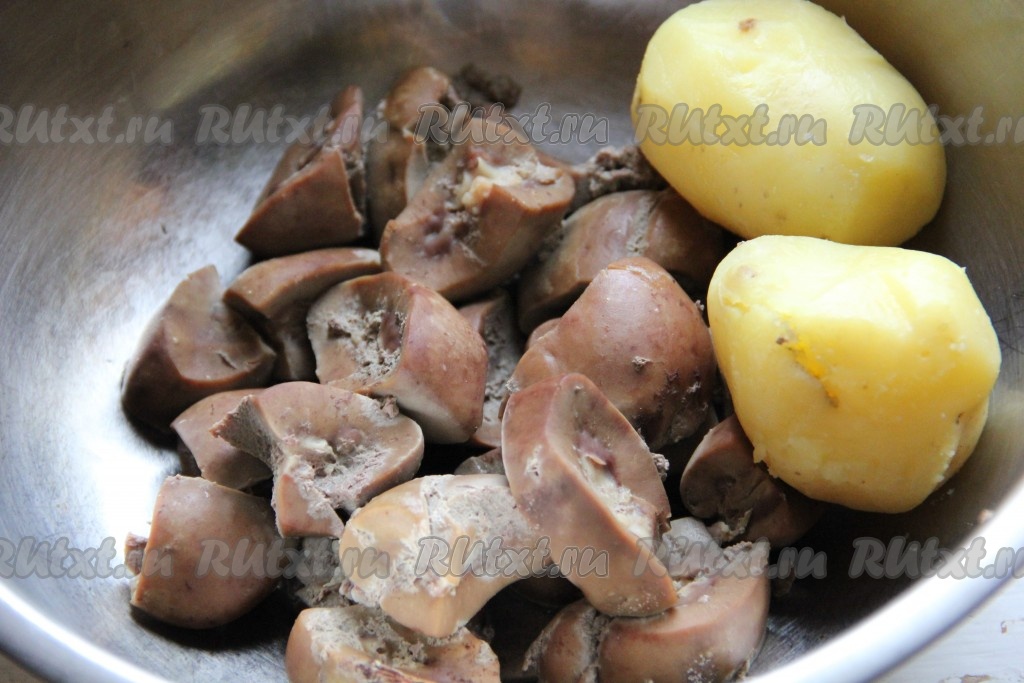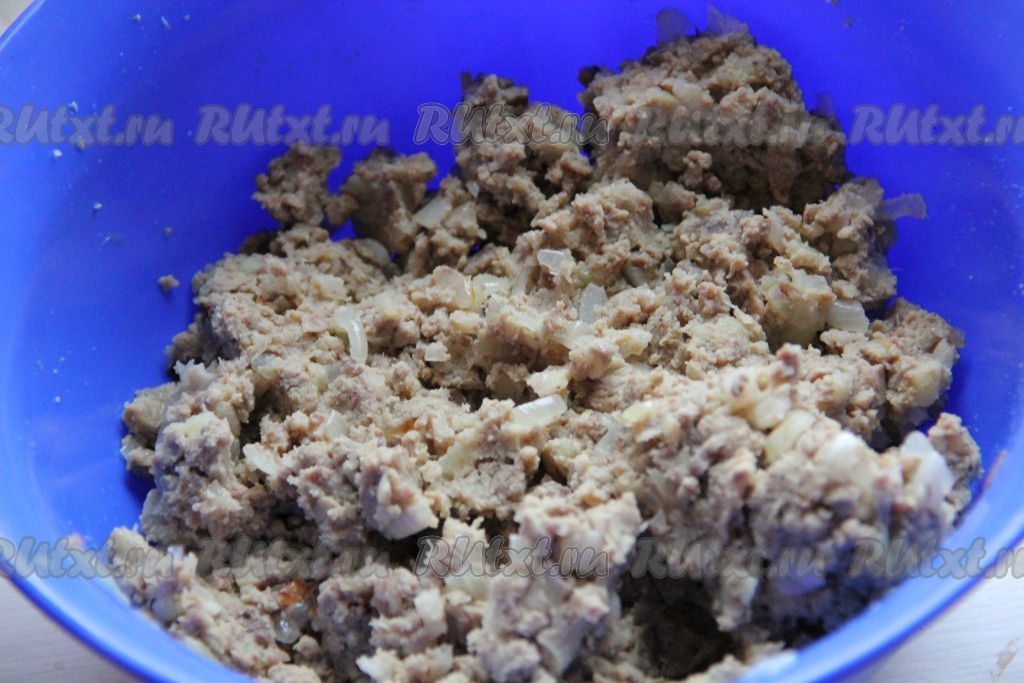Отварной картофель, легкое, зажарку из лука и сала перемолоть на мясорубке. Добавить соль, перец по вкусу и все хорошенько перемешать. Наша начинка из ливера готова.