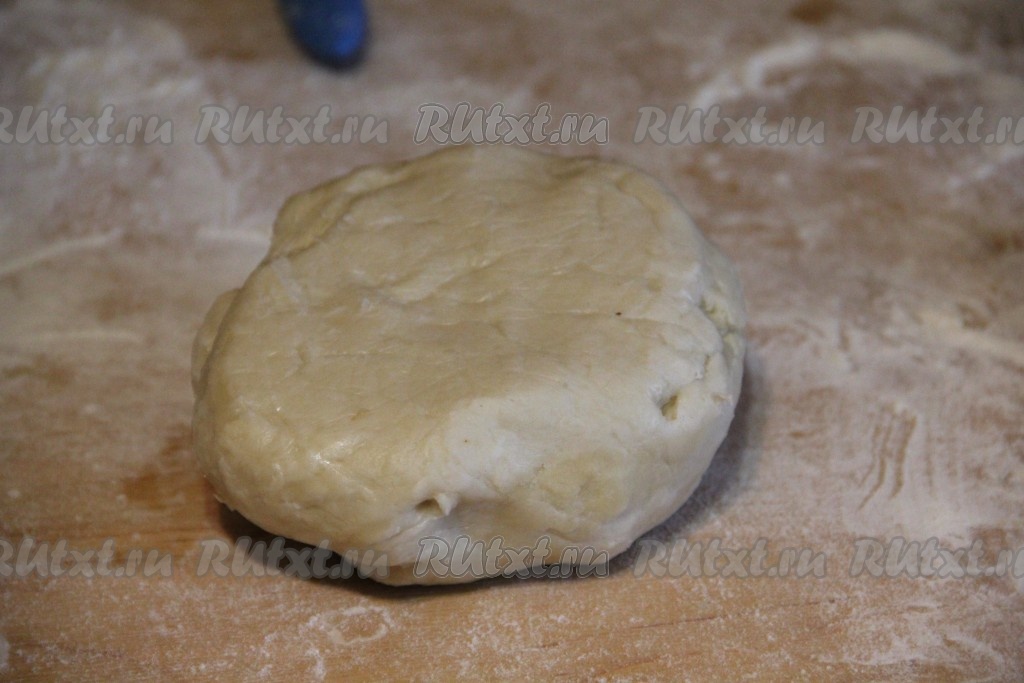 Приготовить тесто для вареников по любому вашему рецепту. Я использовала заварное тесто для вареников. Для этого муку смешала с маслом, залила все кипятком и замесила тесто.