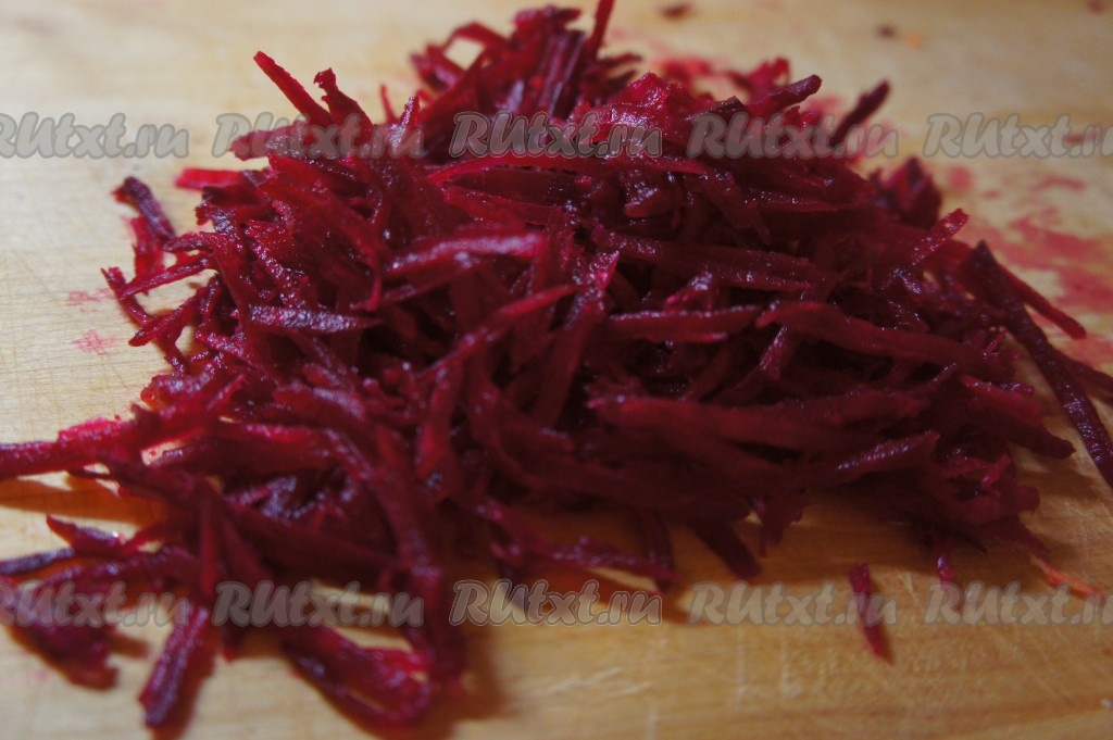 Свеклу натираем на крупной тёрке.