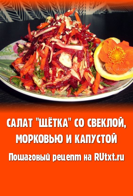 Многие из нас стараются питаться правильно, но, к сожалению, это не всегда удаётся. Ведь в праздничные дни всё равно не обходится без тортиков и различных салатов с майонезом. Вернуться к правильному питанию или просто разгрузить свой кишечник после праздников - довольно просто. И в этом нам поможет салат "Щётка", приготовленный из сырых свеклы, моркови и капусты. Название "Щётка" это блюдо получило из-за своих функциональных свойств. В своём составе овощи содержат грубые волокна, которые позволяют естественным образом очистить кишечник, получить целый набор витаминов, заряд бодрости и отличного настроения. Салат "Щётка", приготовленный со свеклой, морковью и капустой, получается сочным, ярким и вкусным, он отлично разнообразит повседневное меню!