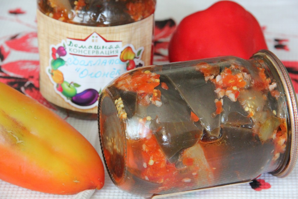 В банки выкладывать слоями баклажаны, каждый слой прослаивая острой заливкой. Банки предварительно можно не стерилизовать.