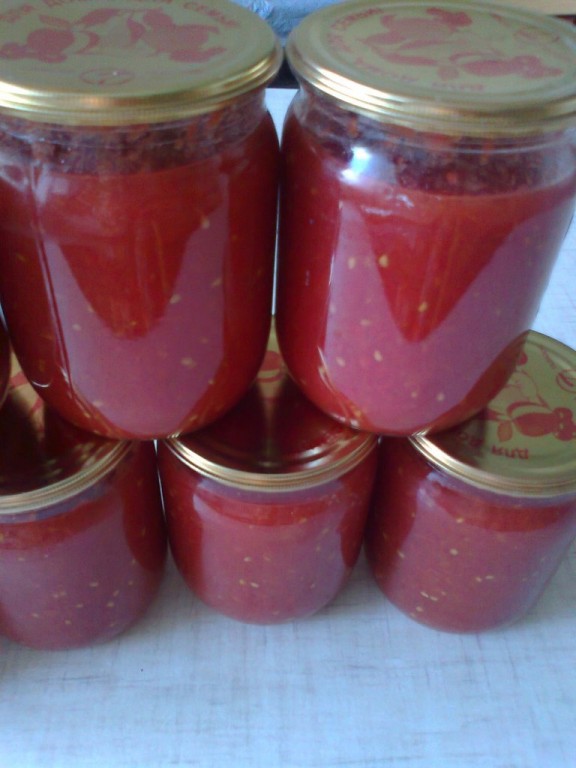 Наше томатное пюре на зиму готово.