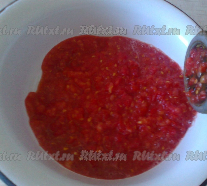 и вырезаем плодоножку, если она крупная, если мелкая - можно не вырезать. Перемалываем помидоры с помощью мясорубки.