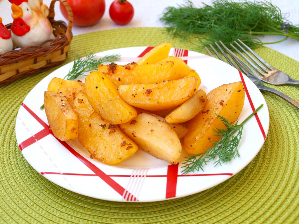 Невероятно вкусный картофель, приготовленный с соевым соусом, подавать сразу с овощами или мясными блюдами.