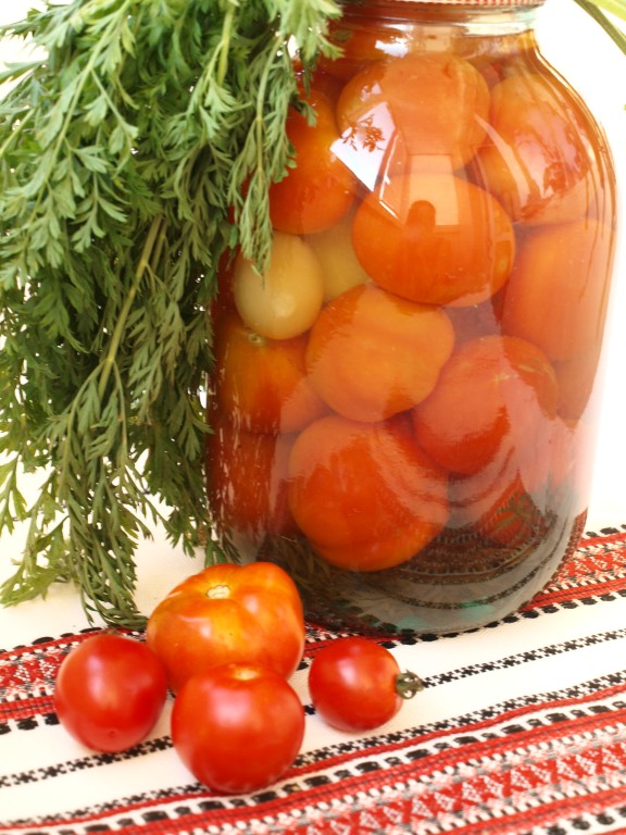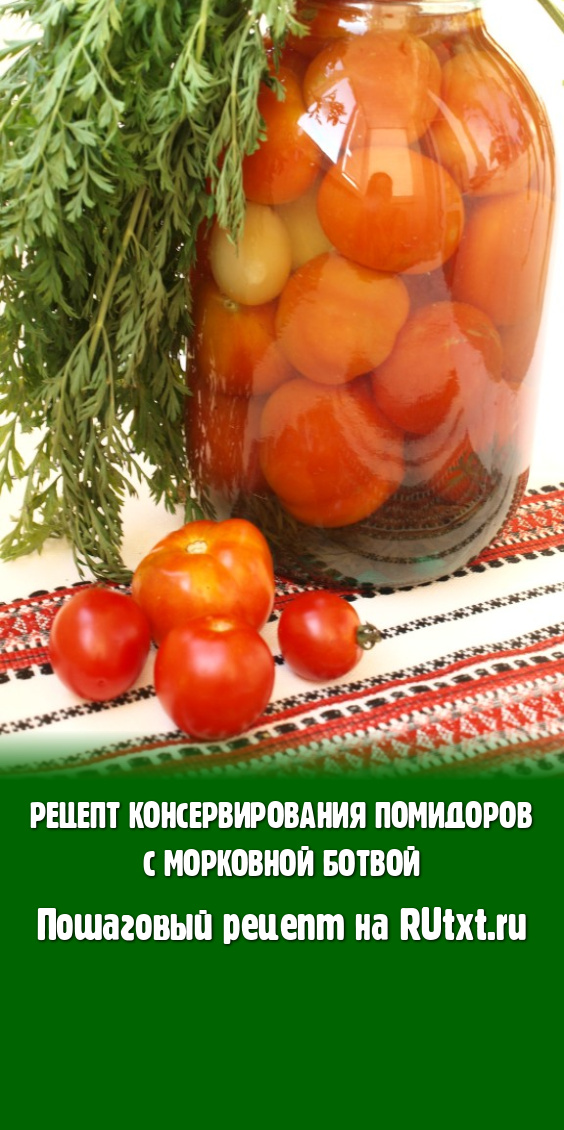 Интересный рецепт консервирования помидоров с морковной ботвой. В данном варианте морковная ботва заменяет все специи. Помидорчики получаются очень вкусными.