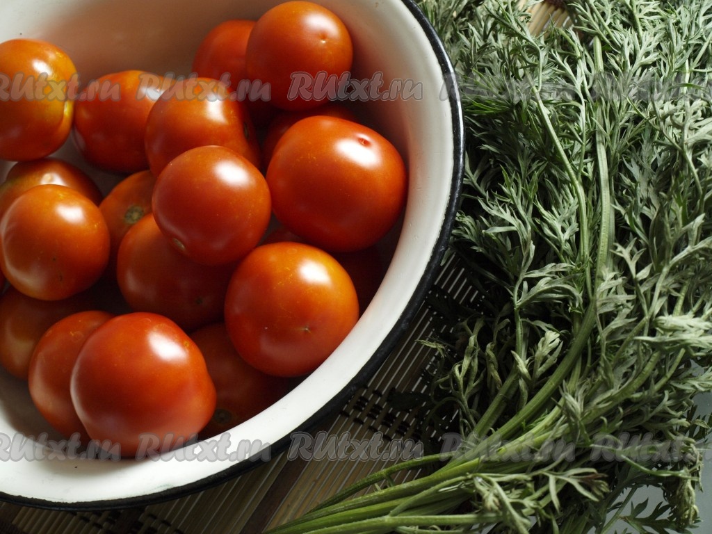 Подготовить помидоры и морковную ботву: помидоры вымыть, а ботву сполоснуть под проточной водой.