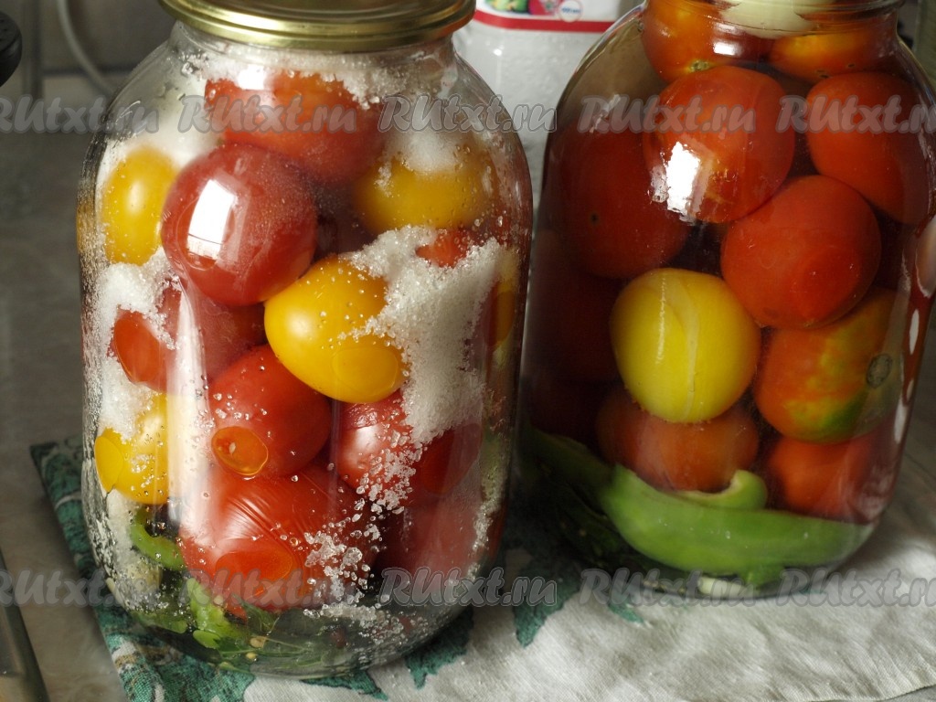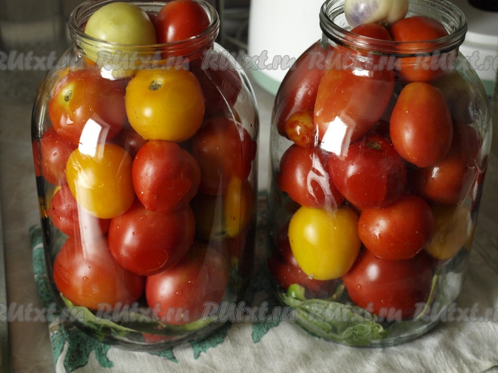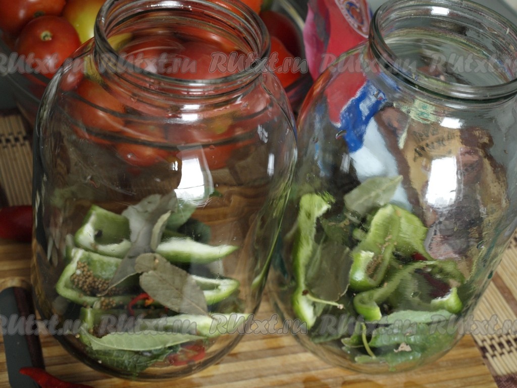 Заполнить банки до верха помидорами.