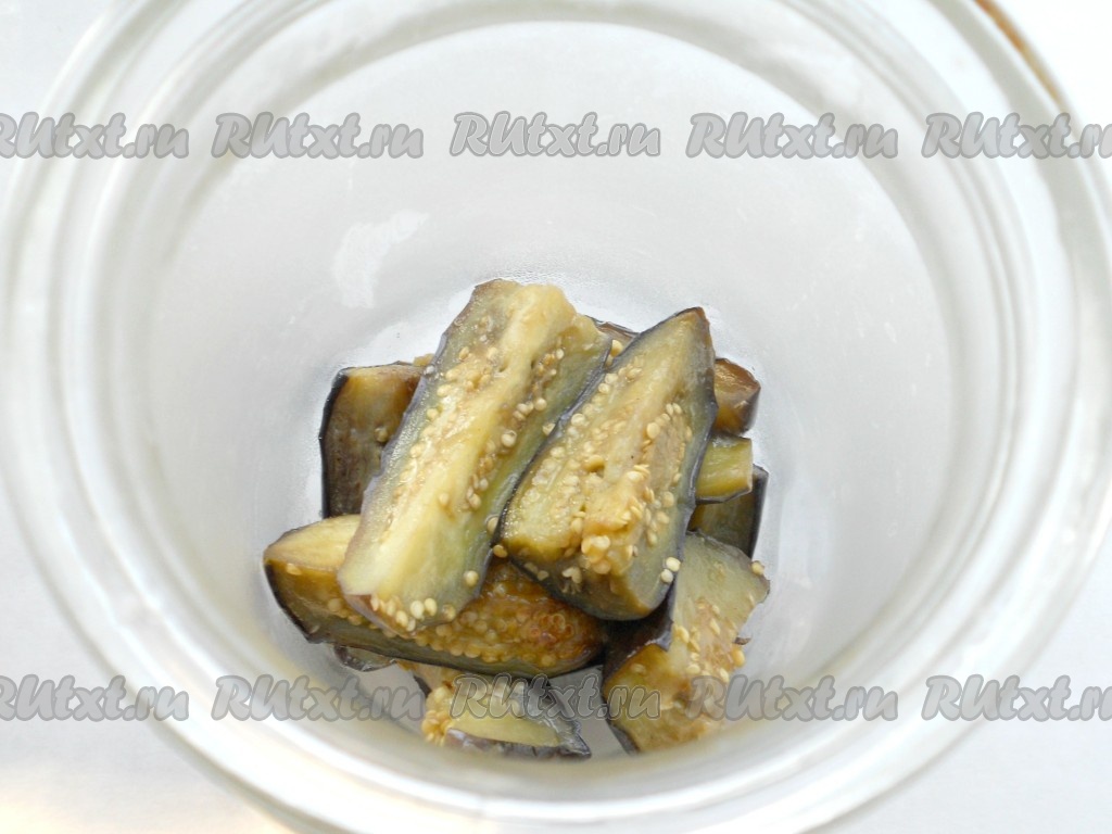 Таким образом заполнить банку доверху, немного утрамбовывая баклажаны.