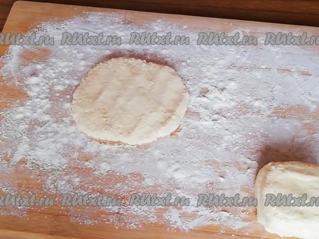 Постепенно добавляя муку в творожную массу и полностью вмешивая её лопаткой (или столовой ложкой), замесить творожное тесто. Добавляя муку, учитывайте, что тесто для сырников должно быть слегка липнущим к ладоням, очень мягким, но при этом хорошо держать форму. Из него легко можно сформировать плоскую лепёшку на припылённой доской поверхности.