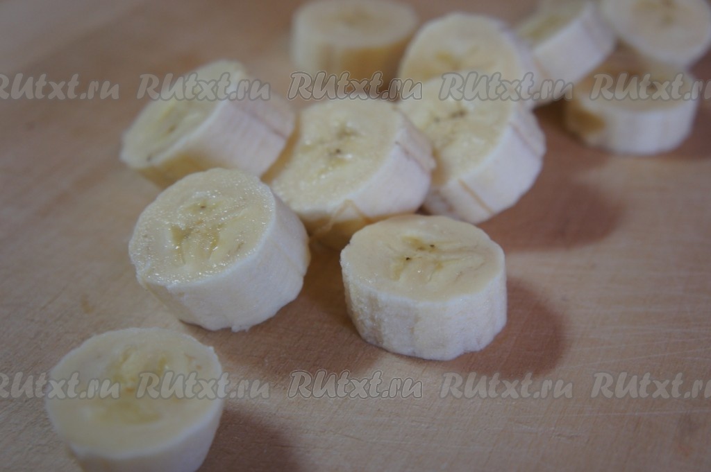 Банан очистить и нарезать на кружки толщиной примерно 0,5 сантиметра.