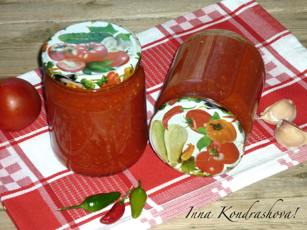 Очень люблю аджику из помидоров и яблок, всегда делаю ее на зиму по этому рецепту и Вам советую. Количество чеснока и острого перца в домашней аджике можно регулировать под свой вкус. Рецепт рассчитан на 5 килограмм помидоров.