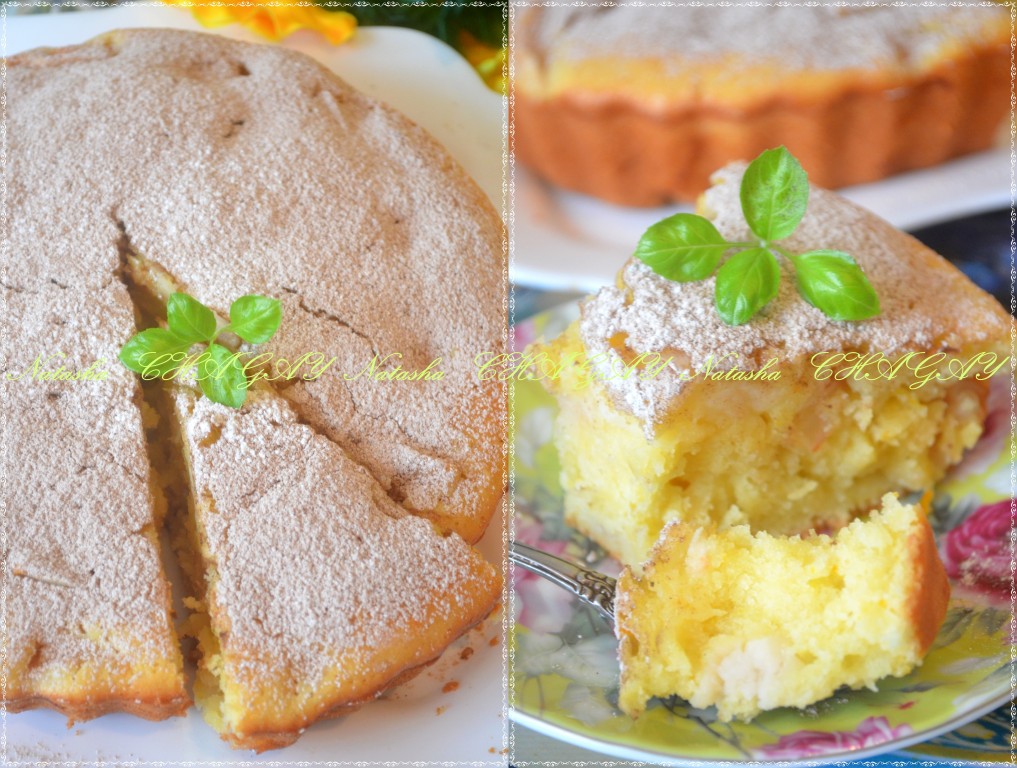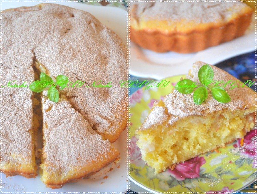 А затем нарезать на кусочки и можно наслаждаться вкусным, сочным, ароматным апельсиново-яблочным пирогом. Я решила перед подачей посыпать выпечку смесью сахарной пудры и корицы, но это уже на ваше усмотрение.