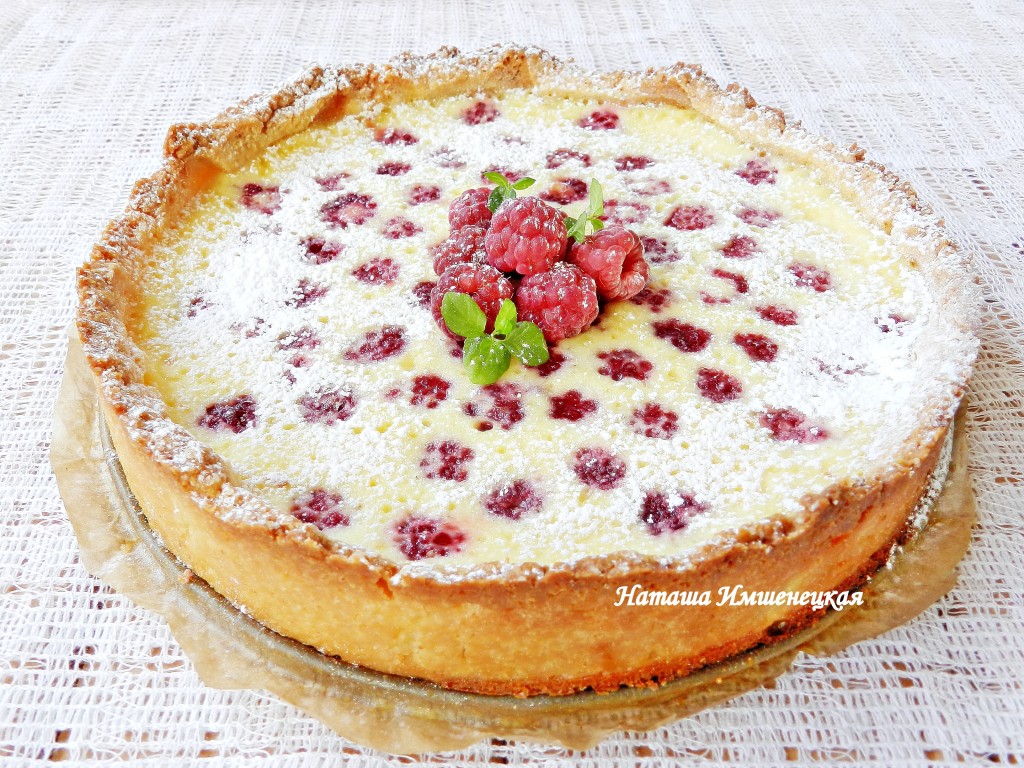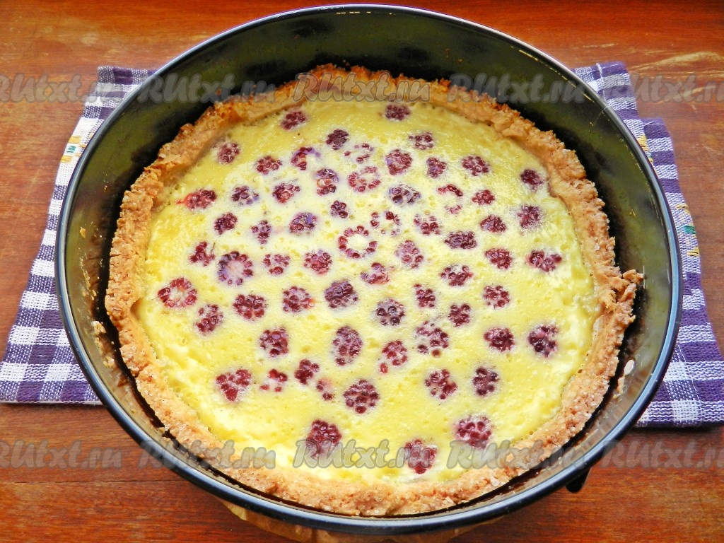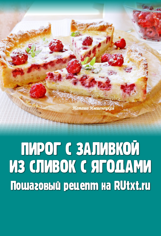 Перед подачей украсить песочный пирог свежими ягодами и посыпать сахарной пудрой. Красивый, вкусный и ароматный пирог с заливкой из сливок с ягодами станет приятным дополнением к чаю или кофе и в будни, и в праздники!