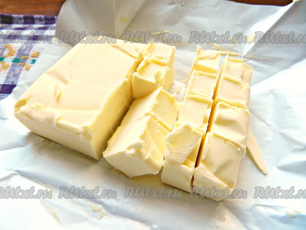 Холодное сливочное масло нарезать на кубики.