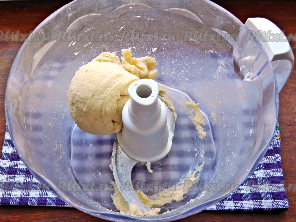 Песочное тесто для этого пирога можно замесить с помощью комбайна или вручную. Если вы будете, как и я, замешивать тесто с помощью комбайна, тогда в комбайн нужно всыпать муку, соль, сахар, добавить кусочки сливочного масла, порубить в крошку. Затем добавить яйцо и замесить мягкое песочное тесто. Если тесто не будет собираться в ком (многое зависит от величины яйца), тогда влейте частями 1-2 столовых ложки холодной воды, вмешивая её в тесто. Для того чтобы замесить тесто вручную, нужно в миску всыпать 150 грамм муки, соль, сахар, добавить кусочки холодного сливочного масла, перетереть руками в мелкую крошку, добавить яйцо, вмешать его и, всыпая по мере необходимости оставшуюся муку, замесить нежное, мягкое, не липнущее к рукам песочное тесто.