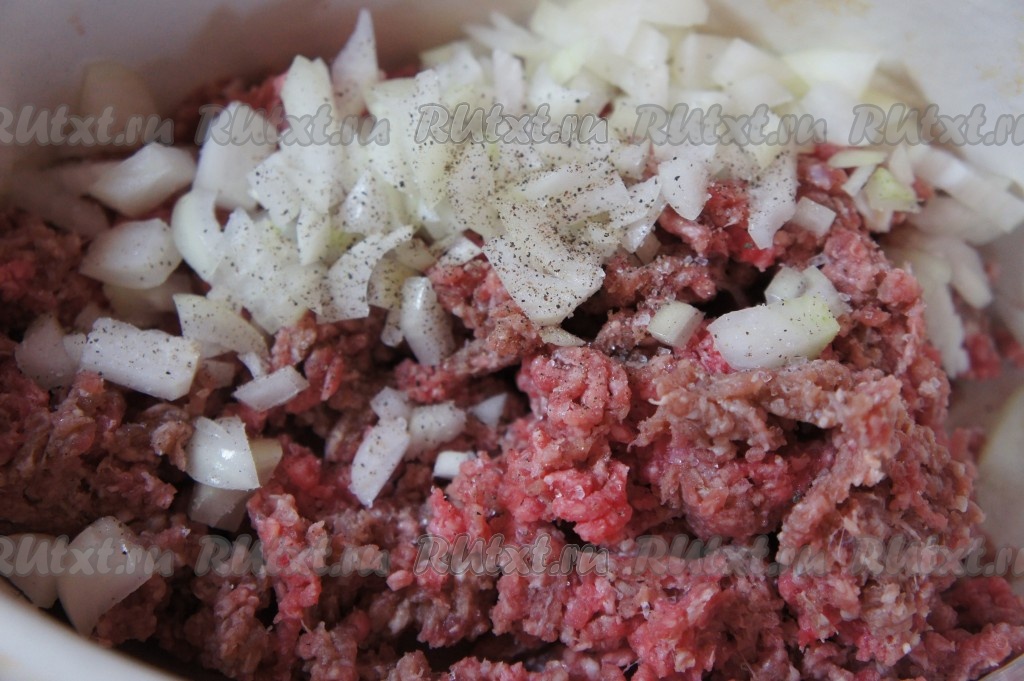 Говядину вымыть, обсушить. Лук и морковь очистить. Говядину пропустить через мясорубку. В сковороде (или в толстостенной кастрюле) разогреть немного растительного масла, выложить получившийся говяжий фарш, добавить мелко нарезанный лук, соль, чёрный молотый перец, перемешать, обжаривать, постоянно перемешивая и разбивая комочки фарша, на среднем огне до изменения цвета фарша, затем влить немного воды, уменьшить огонь до минимума и тушить 10 минут под крышкой, периодически перемешивая.